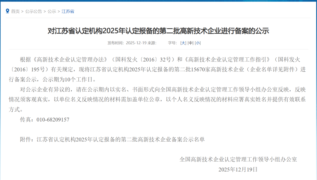 近日,全国高新技术企业认定管理工作领导小组办公室正式发布《对江苏省认定机构2025年认定报备的第二批高新技术企业进行备案的公示》,格丽泰新材料科技(苏州)有限公司名列其中,标志着公司顺利通过高新技术企业复审,再次荣获国家高新技术企业资质。