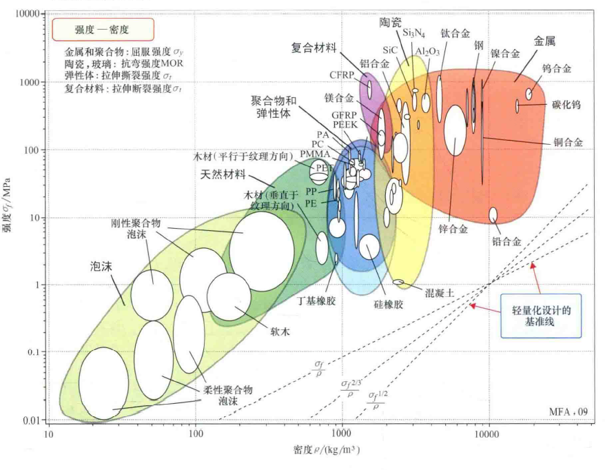 可以说,比性能图是衡量材料机械效率的重要方式,告诉我们如何用最轻的材料实现最佳的结构性能。