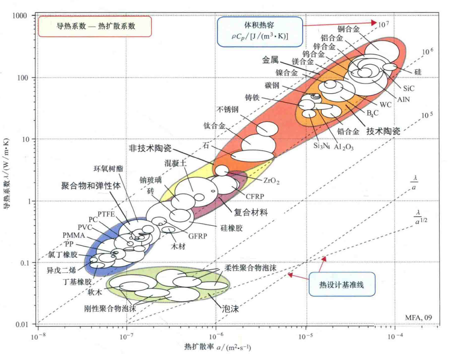 正如前面所描述的,在稳态传热条件下导热系数决定了热量在材料中的传递,而决定瞬态热流的特性是热扩散系数。