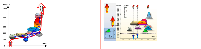 热失控并非单一事件,而是由一系列放热反应串联而成的自加速过程。随着温度逐步攀升,不同反应在特定温度点被依次触发,相互促进,最终导致电池失控。