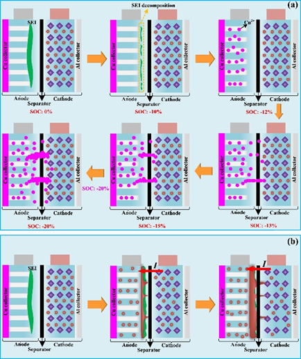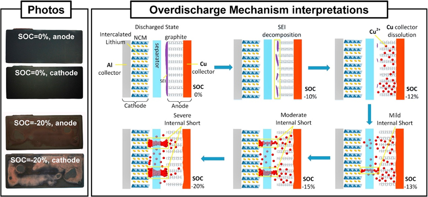 同时,过放也会破坏负极表面的SEI保护膜,使电解液直接与碳材料发生反应,持续放出热量。研究表明,当电池电量被反充至-12%以下后,铜沉积导致的内短路会加剧,进一步增加热失控风险。