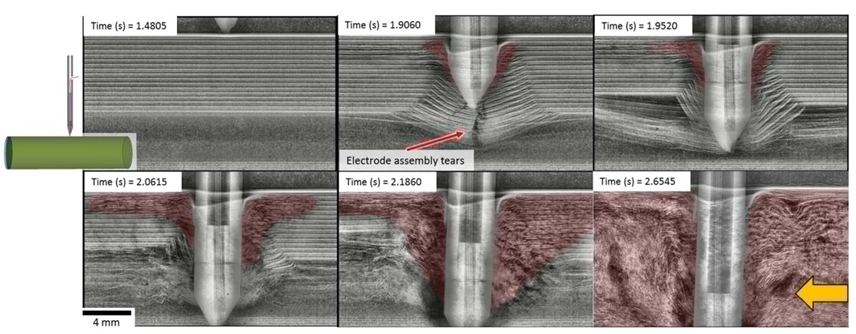 内部短路通常是由于在各种原因下,隔膜受损,导致电池的正负极直接接触所引发的。内短路会释放大量的热量。这一过程还可能引发附近隔膜的断裂,引发热失控在电池内部的传递,最终电池结构发生变化,隔膜继续收缩,进一步导致大规模的内部短路,最终触发热失控。